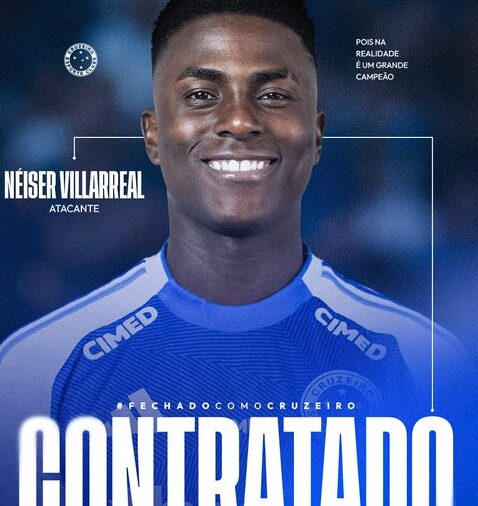 O Cruzeiro anunciou oficialmente, nesta segunda-feira, a chegada do atacante colombiano Néiser Villarreal, um dos destaques do último Mundial Sub-20. O jogador, de 20 anos, assinou contrato válido até 2028 e passa a integrar o elenco celeste já para a próxima temporada.