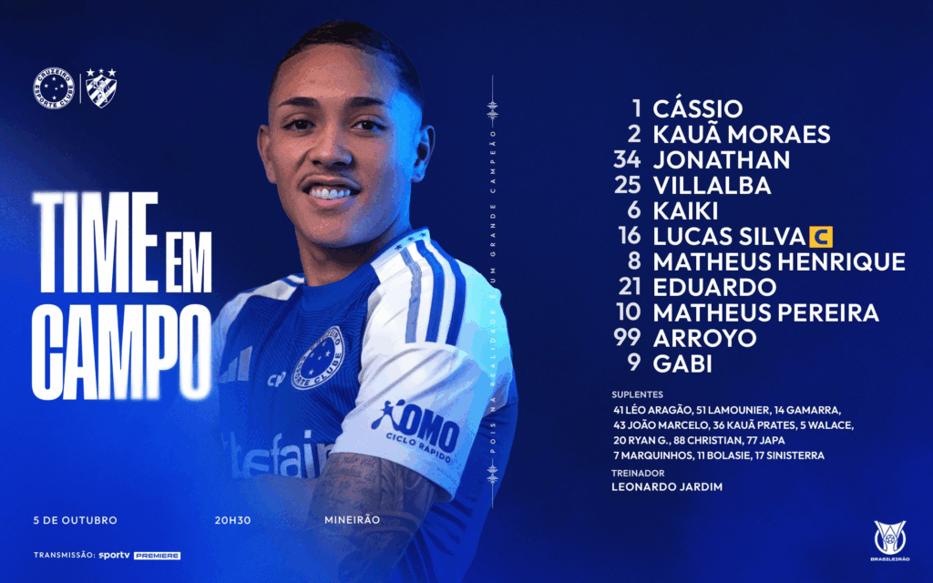 Com vários desfalques por conta de suspensão, Leonardo Jardim foi obrigado a modificar seu time e optou por começar com uma equipe jovem e rápida, colocando Jonathan Jesus na zaga, Kauã Moraes na direita e Arroy na ponta. Gabigol, como era de se esperar, assumiu o ataque na ausência de Kaio Jorge. Assim o Cruzeiro foi a campo: